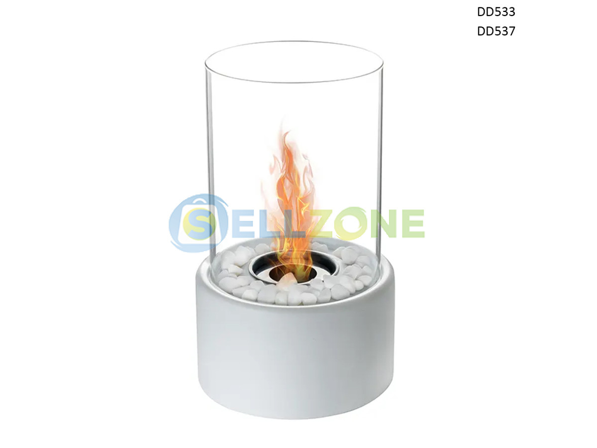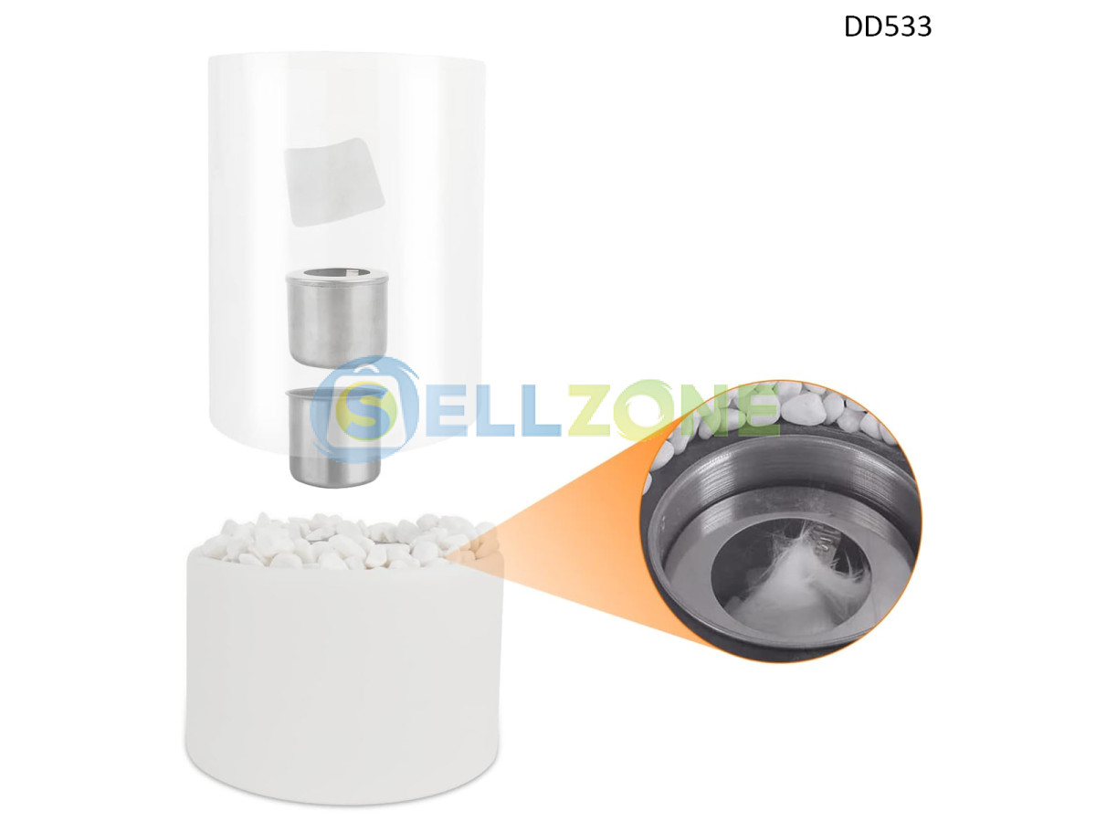 Добавете естествена топлина и стил към интериора или откритите си пространства с бялата кръгла биоетанолова камина DD533/DD537. Благодарение на своя модерен дизайн, декоративни бели камъчета и екологично горене, тази компактна камина е функционално и визуално решение за дома, балкона или градината.