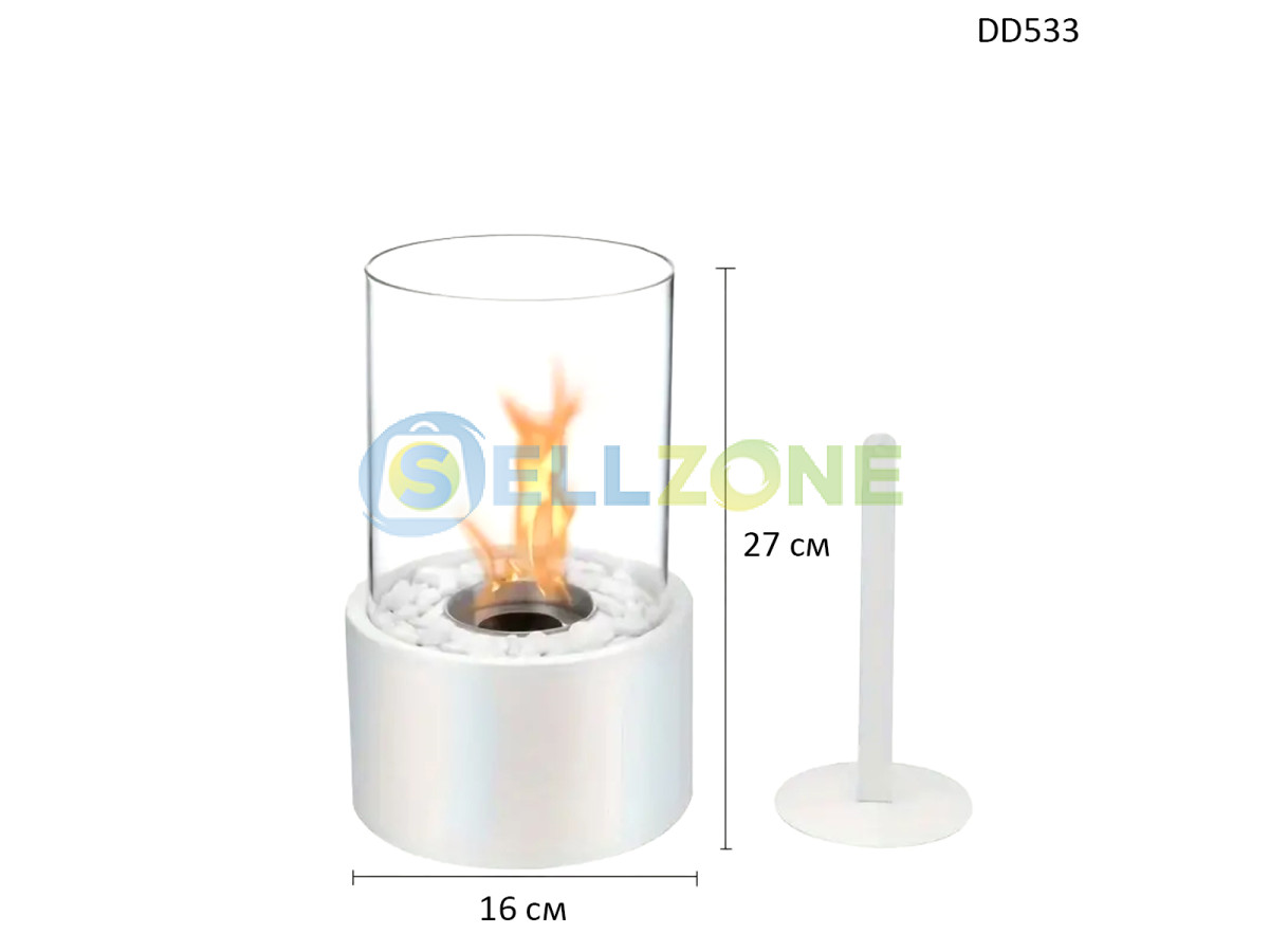 Бяла декоративна кръгла камина на биоетанол с бели камъни – DD533/7