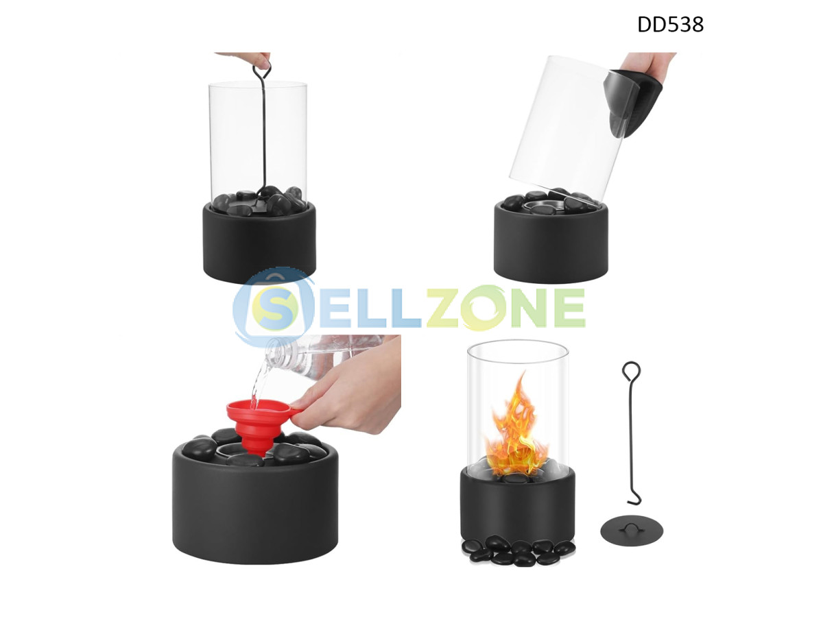 Превърнете всяко пространство – у дома или на открито – в уютен кът с декоративната настолна камина DD538. Съчетавайки елегантна черна визия с безопасност и екологично горене, този компактен модел създава истински пламък без дим, миризми или нужда от комин.