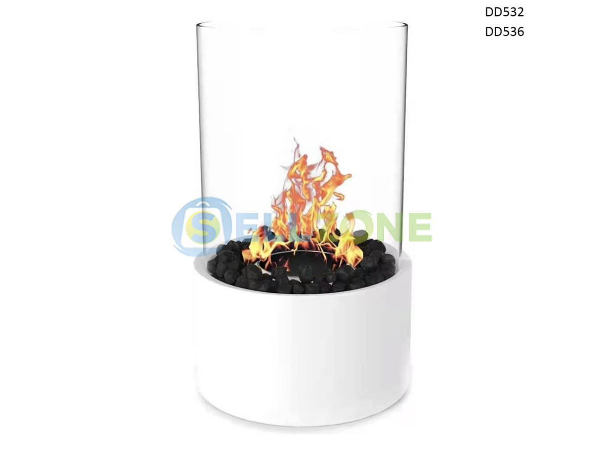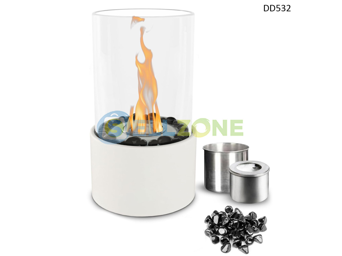 Декоративна кръгла биоетанолова камина в бял цвят с черни камъни – DD532/6