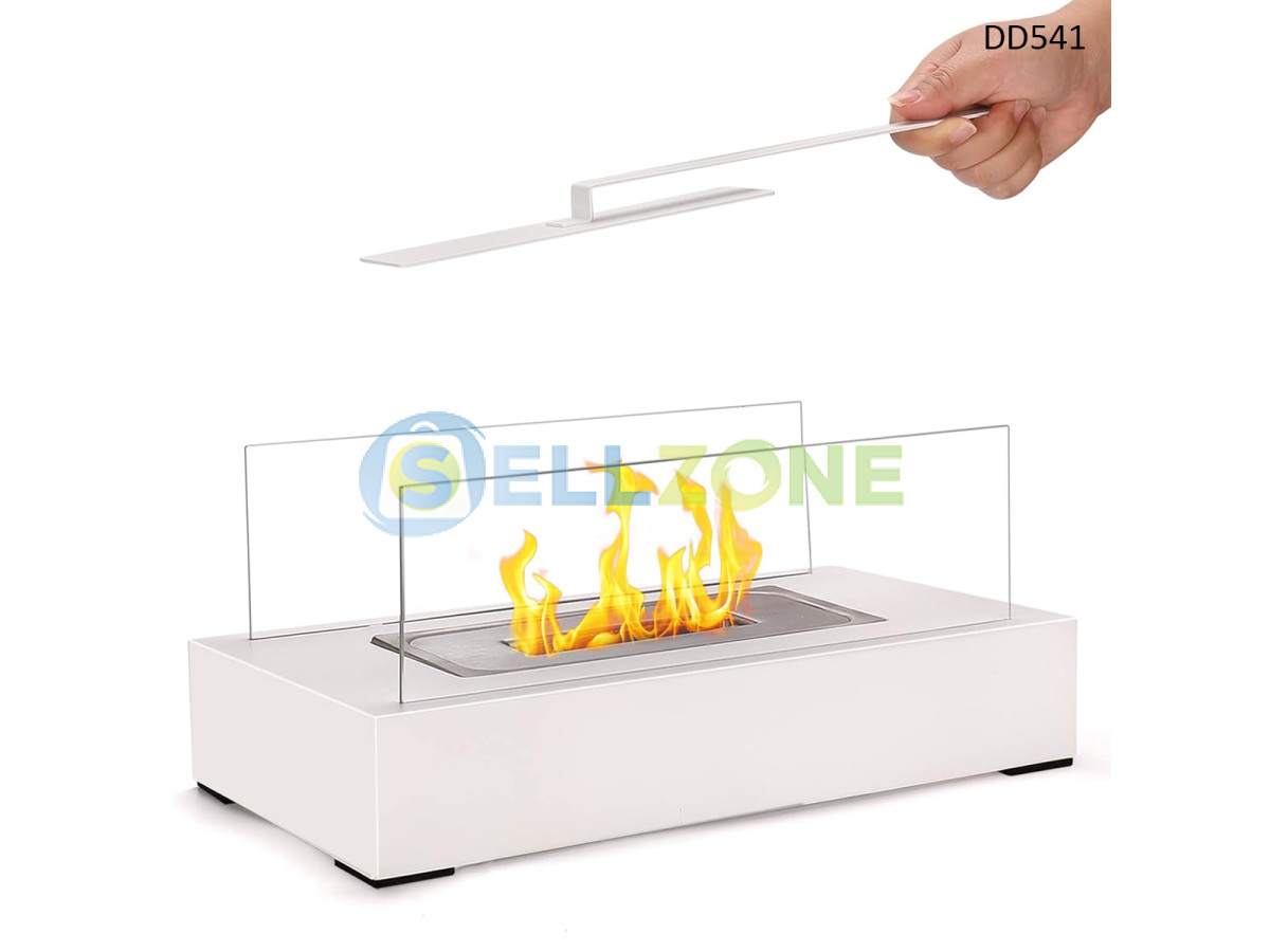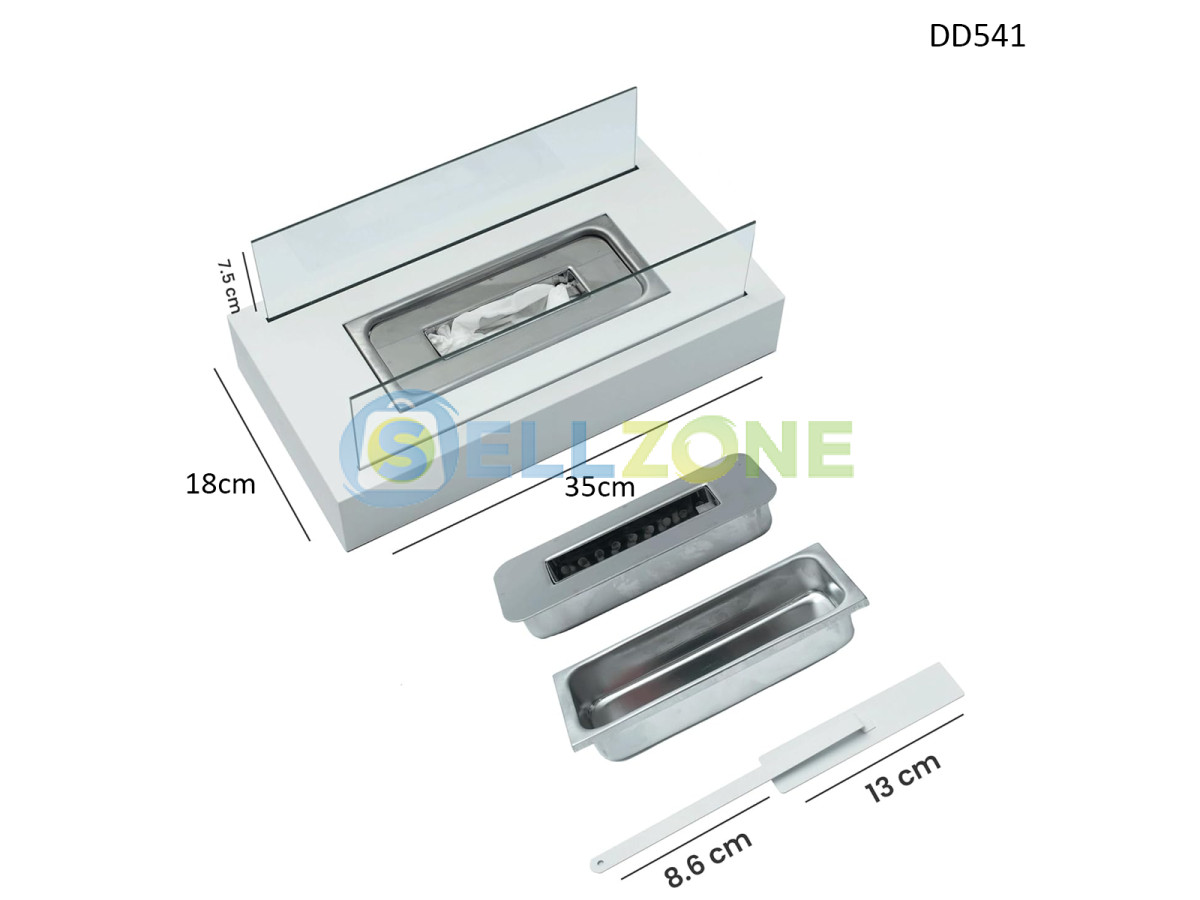 Декоративна правоъгълна биоетанолова камина в бял цвят със стъклени панели – DD541