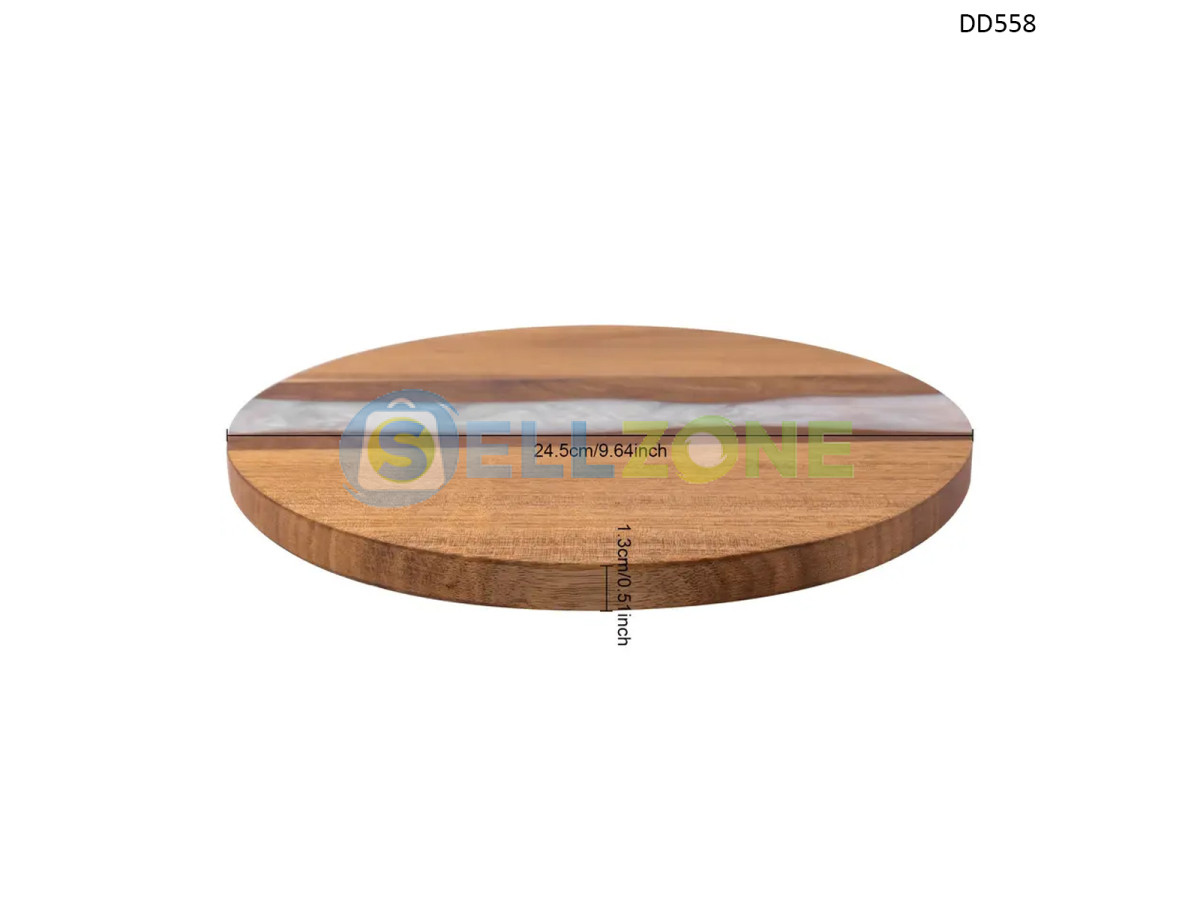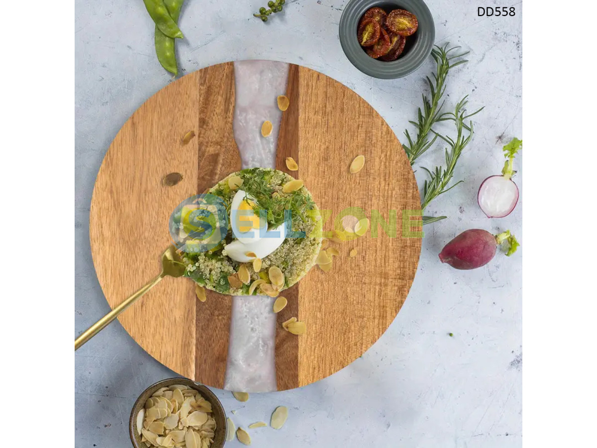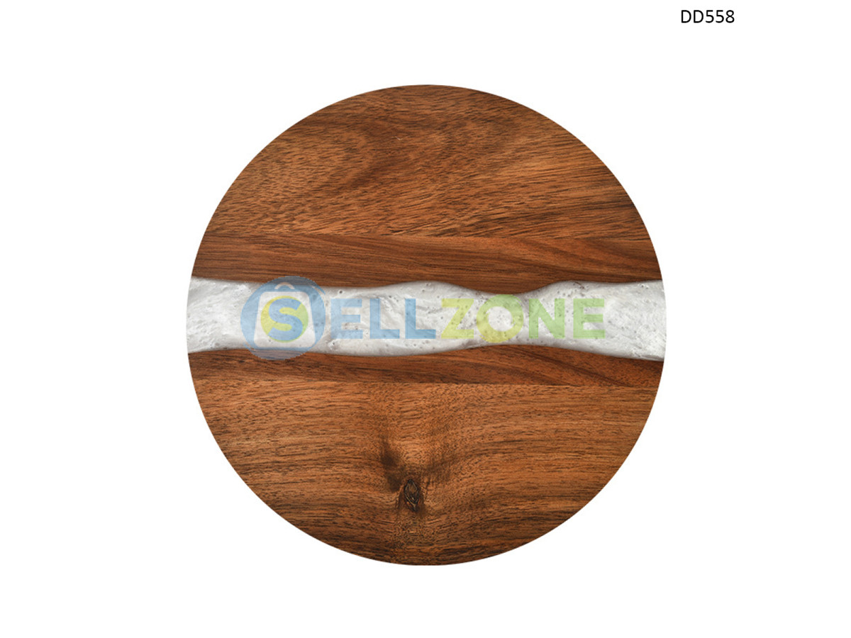 Кръгла кухненска дъска с епоксидна смола "Мрамор" от акациево дърво –DD558