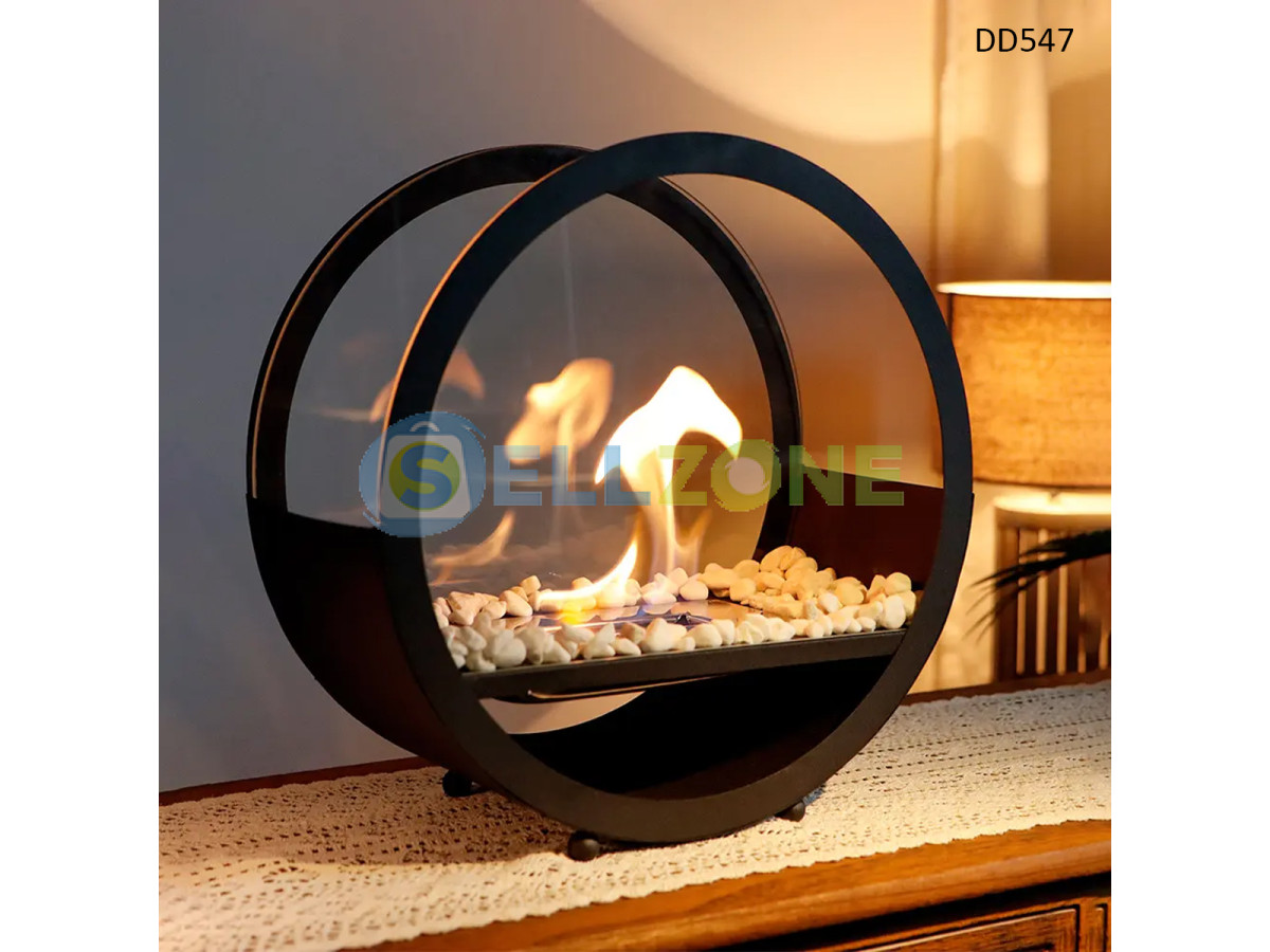 Кръгла настолна биоетанолова камина с бели декоративни камъни –DD547