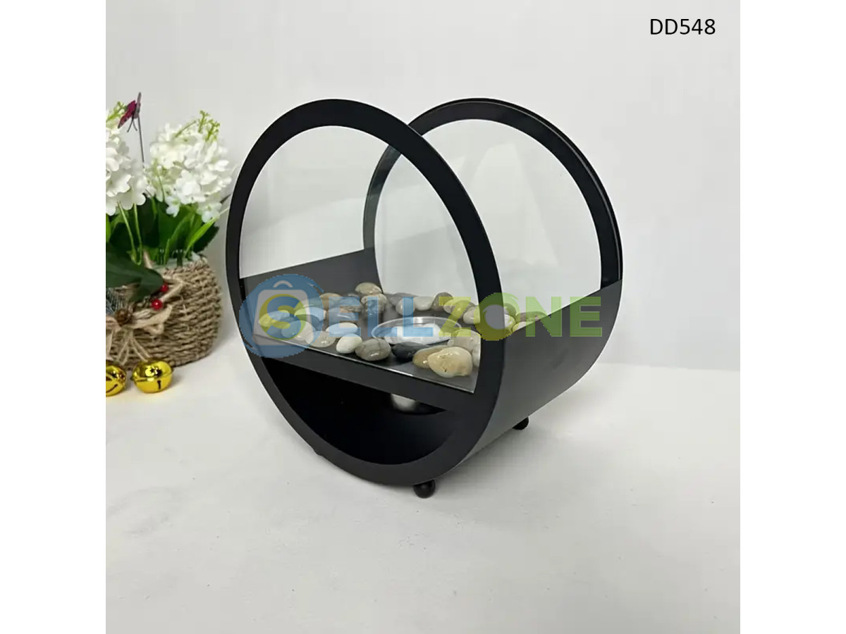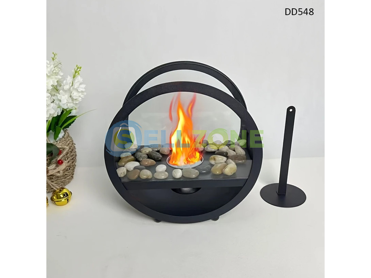 Моделът DD548 е стилна настолна биоетанолова камина, съчетаваща модерен индустриален дизайн с естествени декоративни елементи. Със своята компактна кръгла форма, здрава конструкция и огнеупорни закалени стъкла, тя е идеален избор за създаване на уютна атмосфера в дома, офиса или на открито