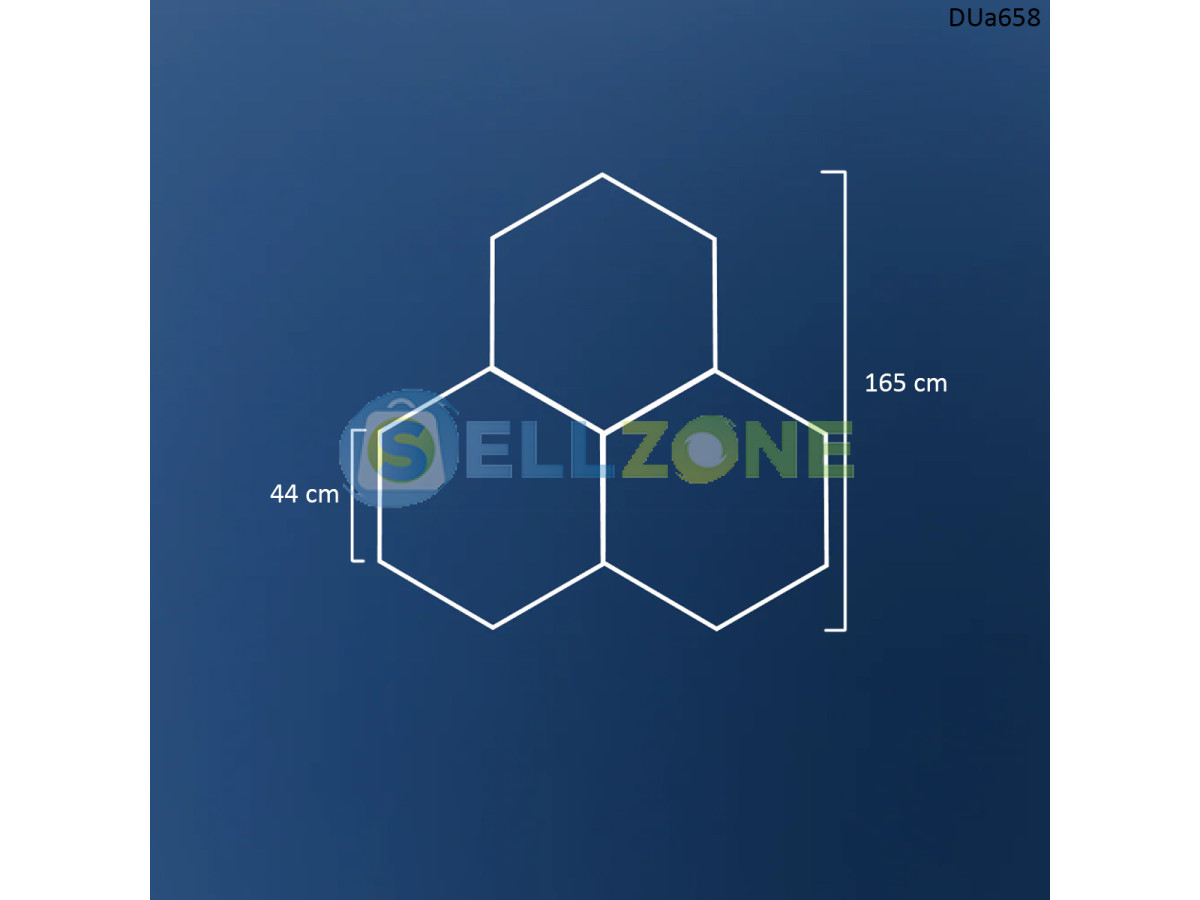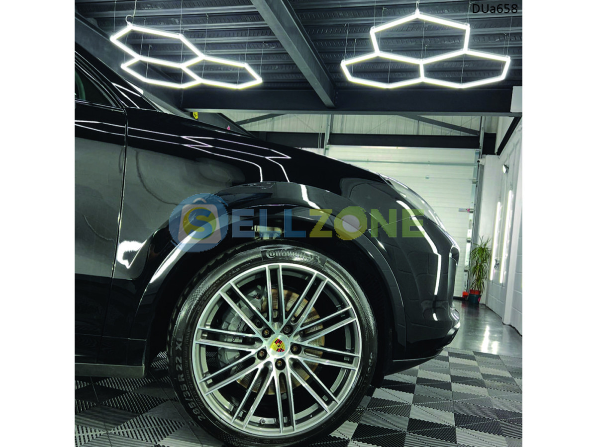 Комплектът DUa658 е създаден специално за хора, които искат перфектна видимост и впечатляващ вид в гараж, автодетайлинг студио или домашна работилница. Пчелната пита – три взаимосвързани шестоъгълника – добавя футуристична и модерна визия, без да компрометира функционалността.