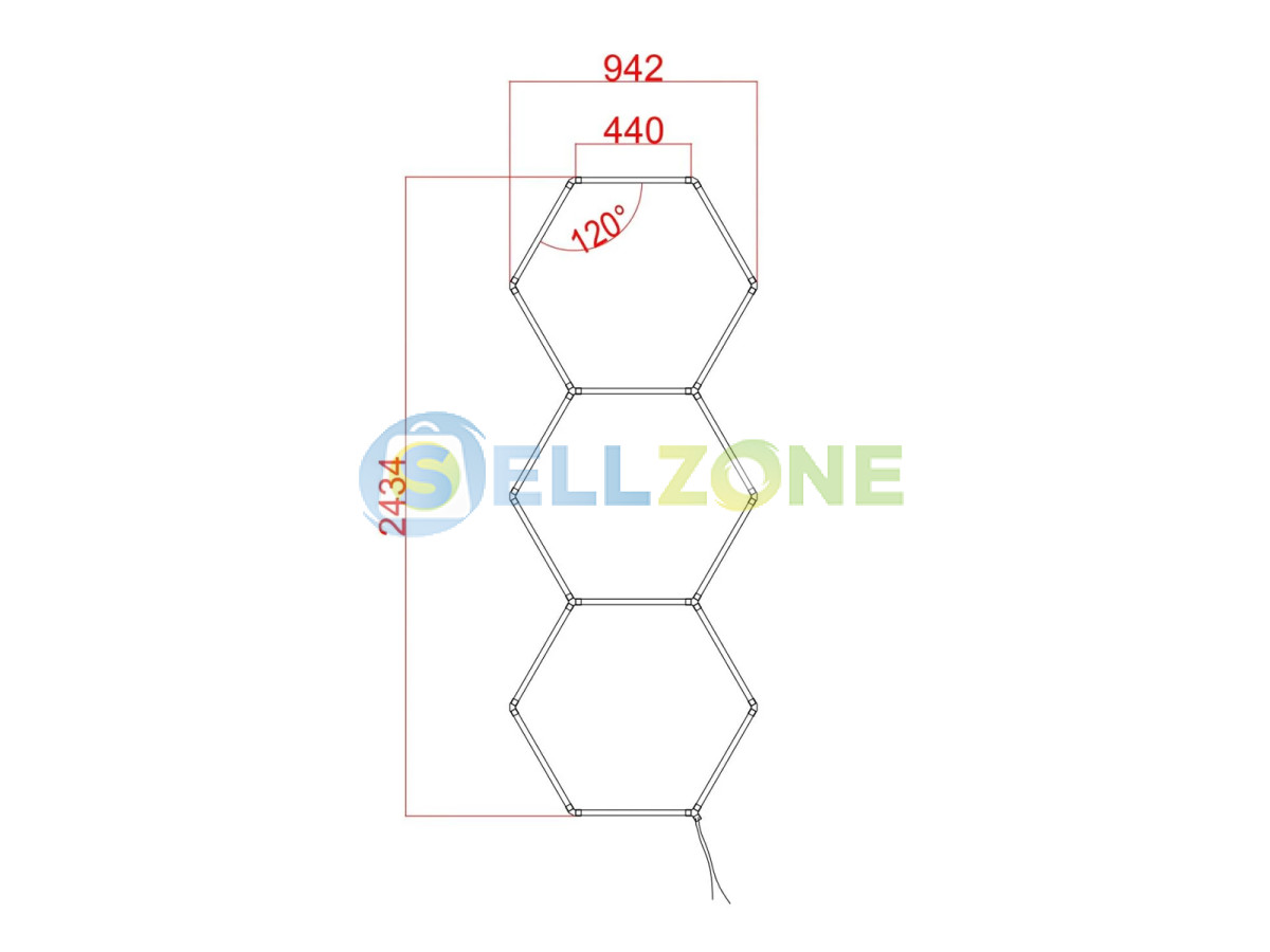 • Брой панели: 3 шестоъгълника (линирано подредени)