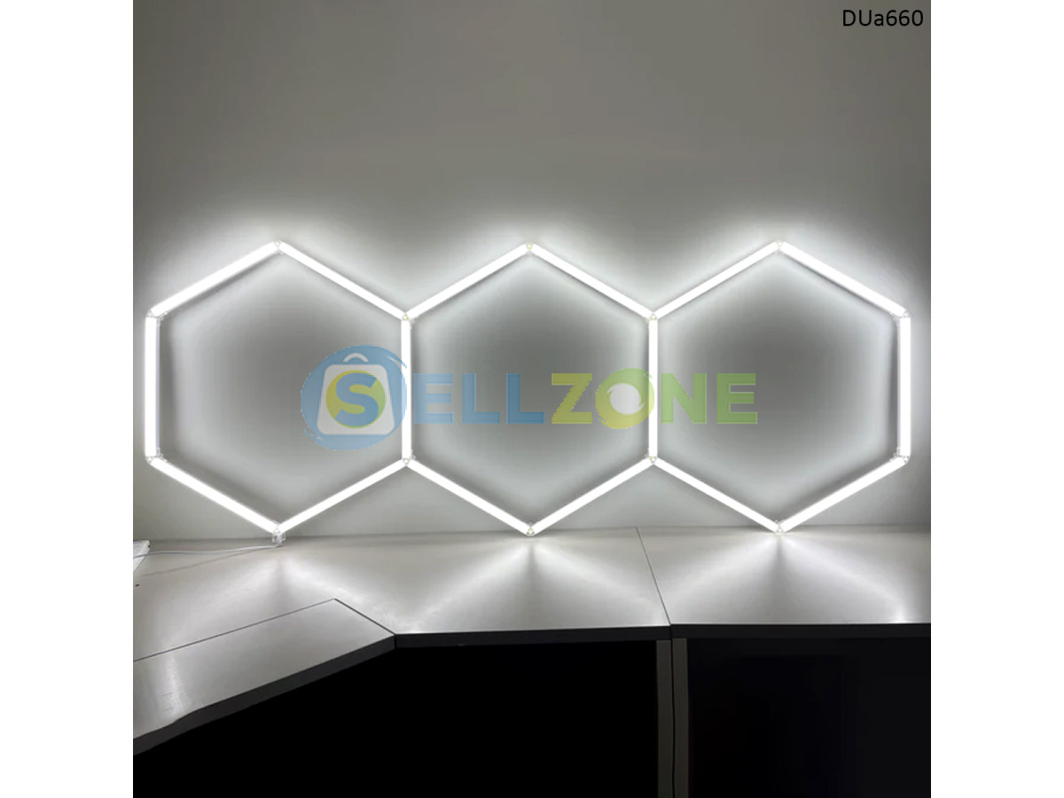 Линейно LED осветление „Пчелна пита“ – 3 шестоъгълника за гараж и автодетайли – DUa660