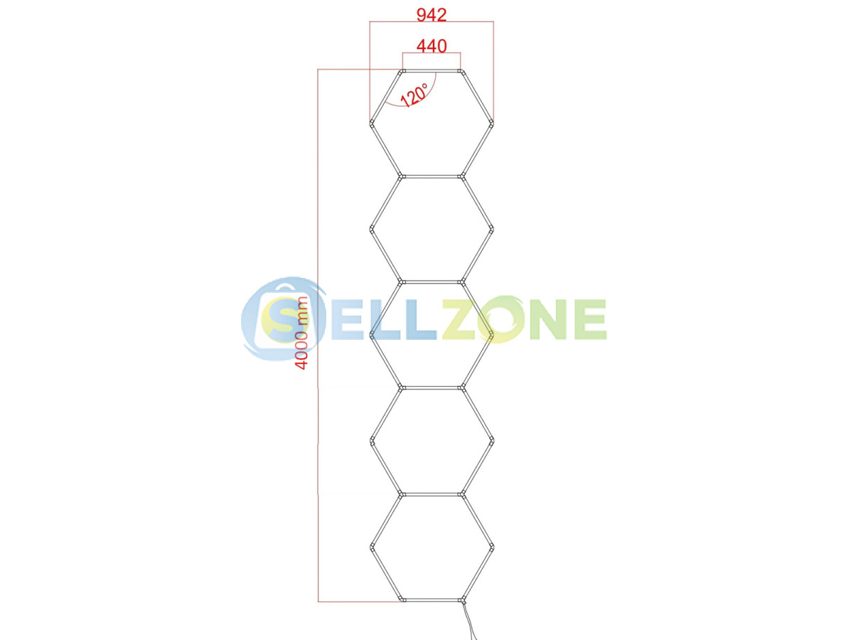 • Конфигурация: 5 свързани шестоъгълни LED модула, линейно подредени