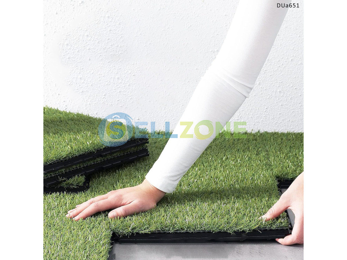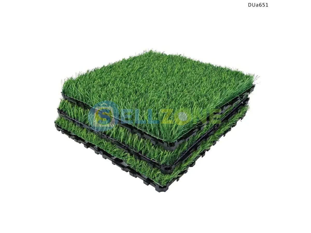 Превърни всяко външно пространство в свежа, зелена зона за релакс с модулните плочки DUa651 с изкуствена трева. Те комбинират естествена визия с изключителна устойчивост и бърз монтаж – без инструменти, без лепила и без поддръжка. Създай си усещане за истинска трева дори в най-градската среда! DUa651 е перфектното решение за всеки, който иска уют и зеленина, без да се ангажира с косене, поливане или торене. Това са плочки за декинг със синтетична тревна повърхност и здрава PP основа с щрак система – лесна за монтаж, демонтаж и адаптация.