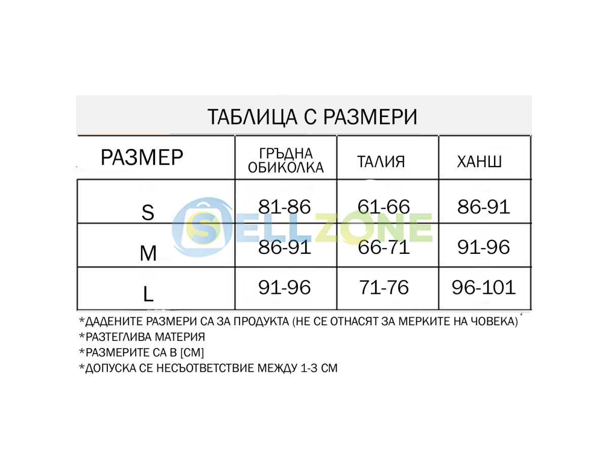 Комплектът е изработен от силно еластичен плат по иновативна технология и е изключително удобен за носене.