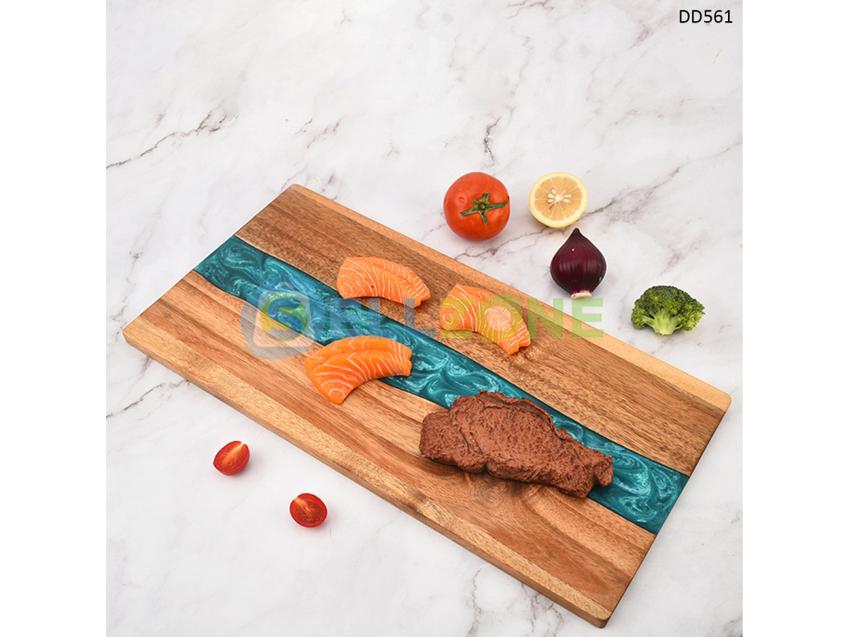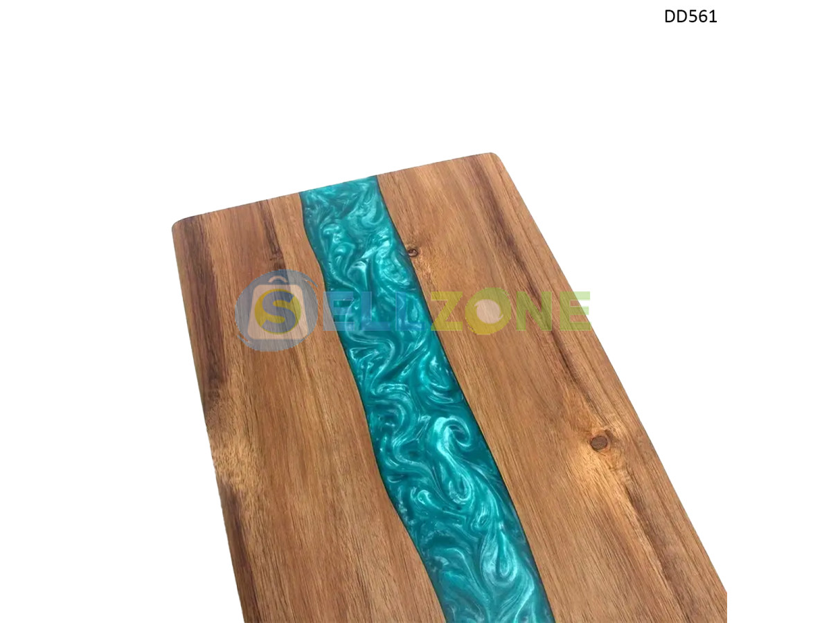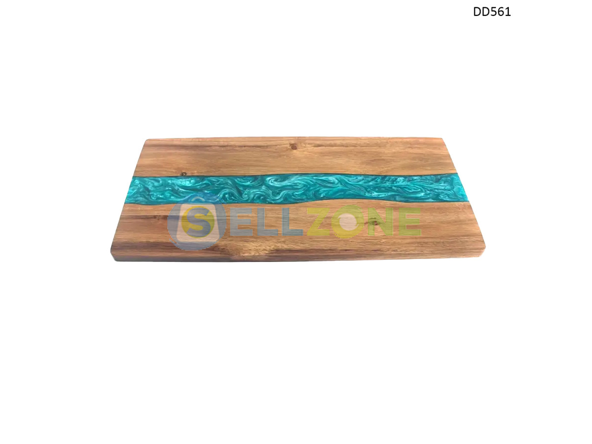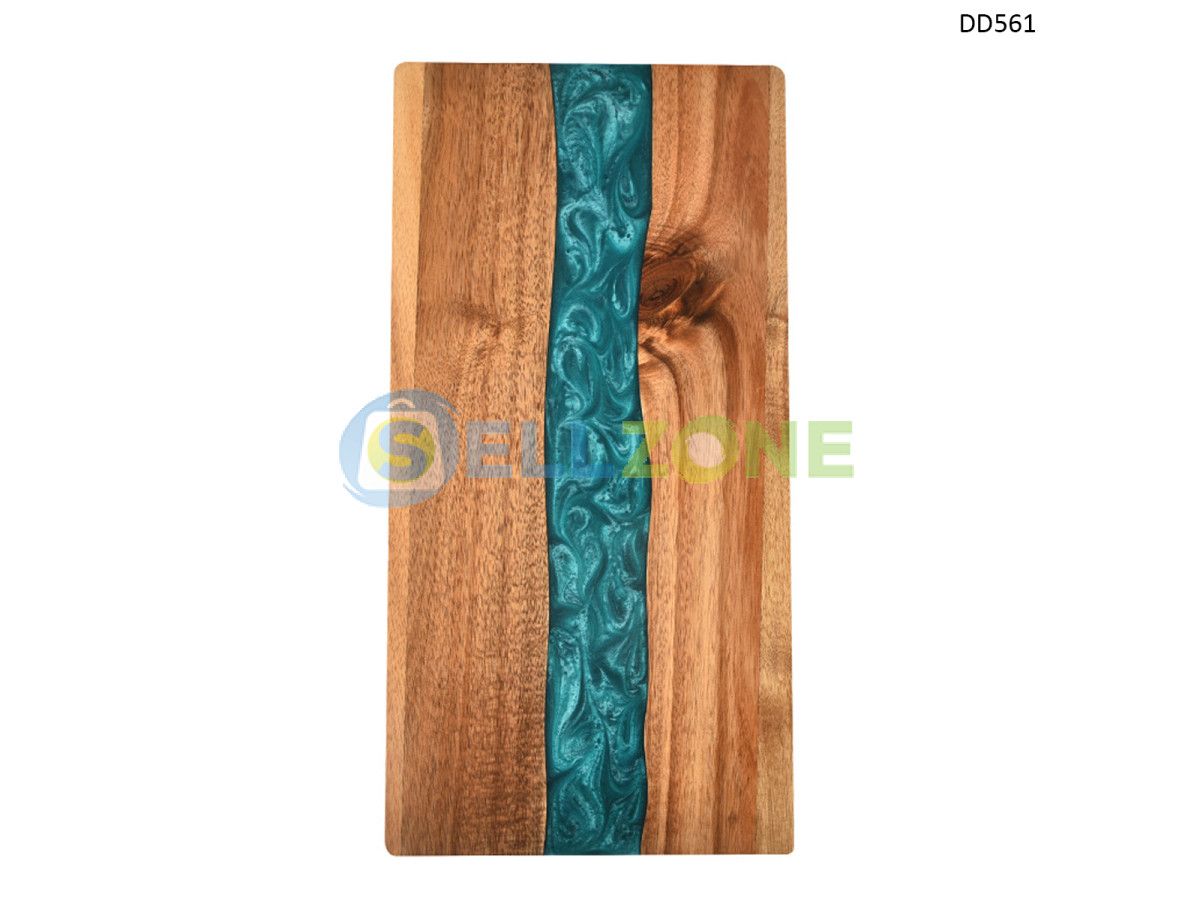Продълговата дъска с епоксидна смола "Тюркоаз" от акациево дърво – DD561
