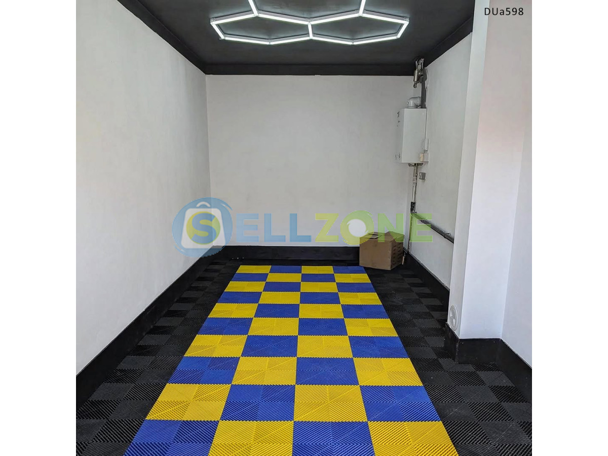 DUa598 е PVC модулна подова плочка, проектирана специално за натоварени пространства като гаражи, работилници и автосервизи. Със своя наситен син цвят, тя не само придава динамична визия, но и осигурява здрава и устойчива повърхност, подходяща за натоварено ползване. Подходяща е и за хора, които искат да придадат професионален или индустриален вид на помещението си, без сложен монтаж.