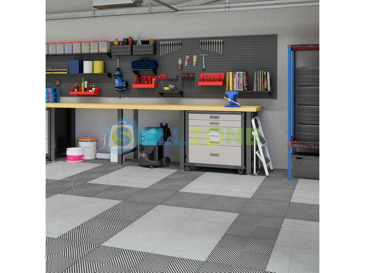 DUa590 е иновативна PVC модулна плочка, създадена специално за нуждите на съвременния гараж, работилница или търговско пространство. Съчетава здравина, лесен монтаж и стилна визия в едно универсално подово решение. Светло сивият ѝ цвят придава усещане за простор и чистота, а модулната конструкция я прави изключително гъвкава за различни типове помещения.