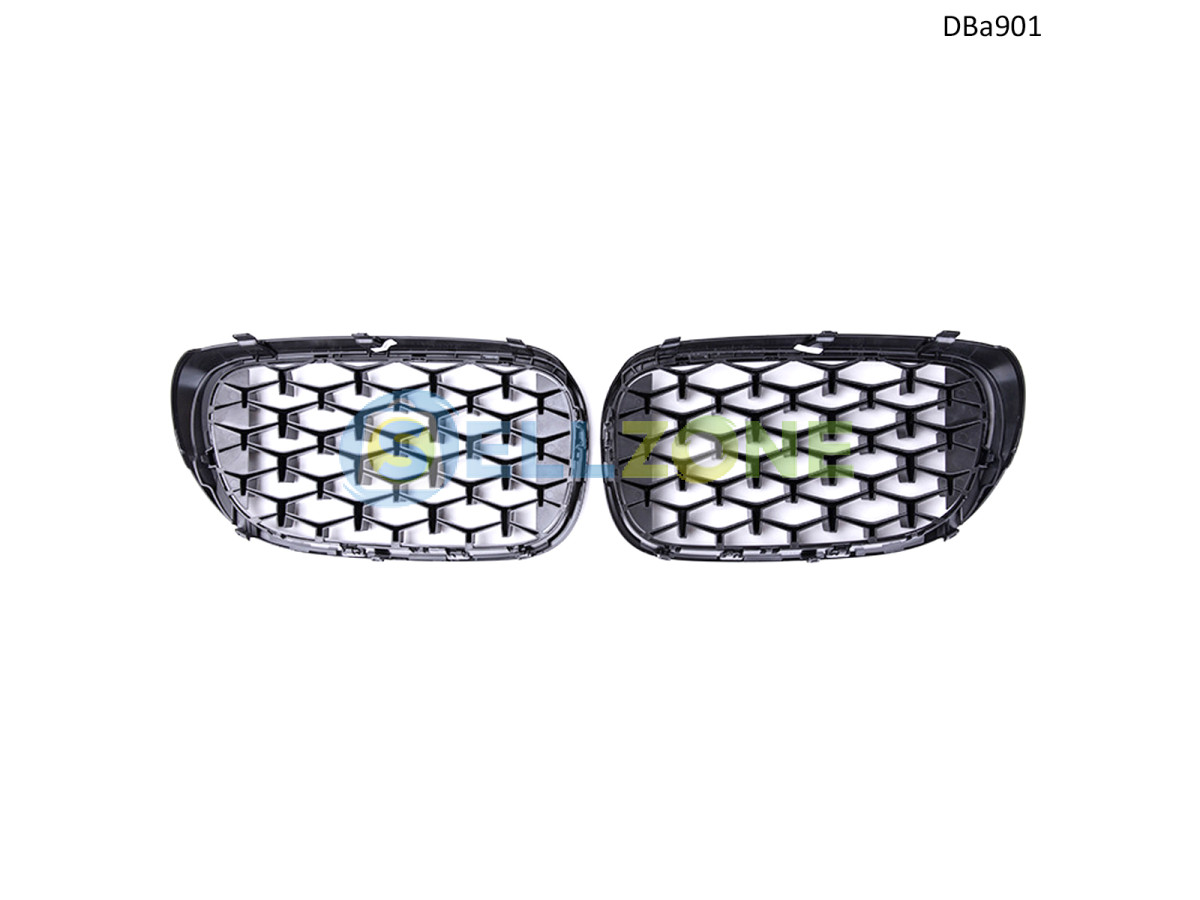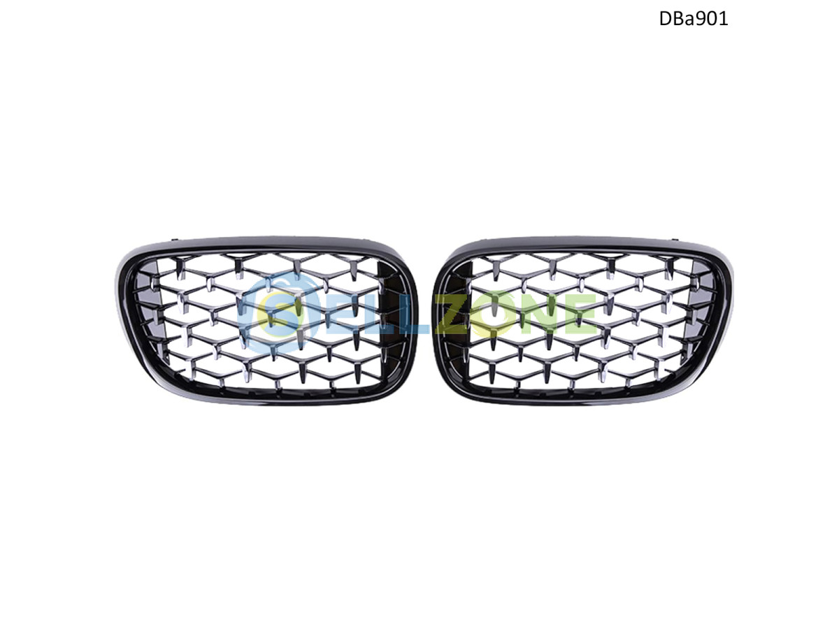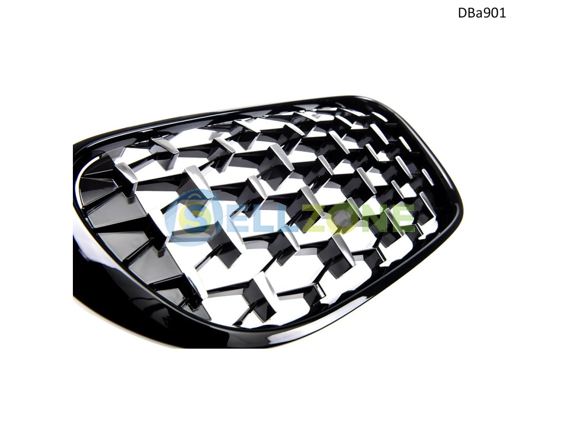 Премиум дизайн с хром и черна рамка: Висококачественото изпълнение на диамант елементите в комбинация с черната рамка прави бъбреците елегантни и спортни, придавайки на предната част на автомобила по-агресивен и луксозен вид.